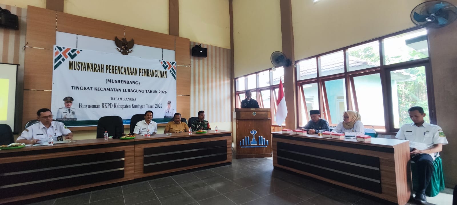 Kuningan – PS Kanit Intelkam Polsek Luragung Polres Kuningan AIPDA Aas Rosnawan, S.E menghadiri kegiatan Musyawarah Perencanaan Pembangunan (Musrenbang) Tingkat Kecamatan Luragung Tahun 2026 dalam rangka penyusunan Rencana Kerja Pemerintah Daerah (RKPD) Kabupaten Kuningan Tahun 2027, yang dilaksanakan pada Rabu, 11 Februari 2026, mulai pukul 08.00 WIB hingga selesai, bertempat di Aula Kantor Kecamatan Luragung, Kabupaten Kuningan.