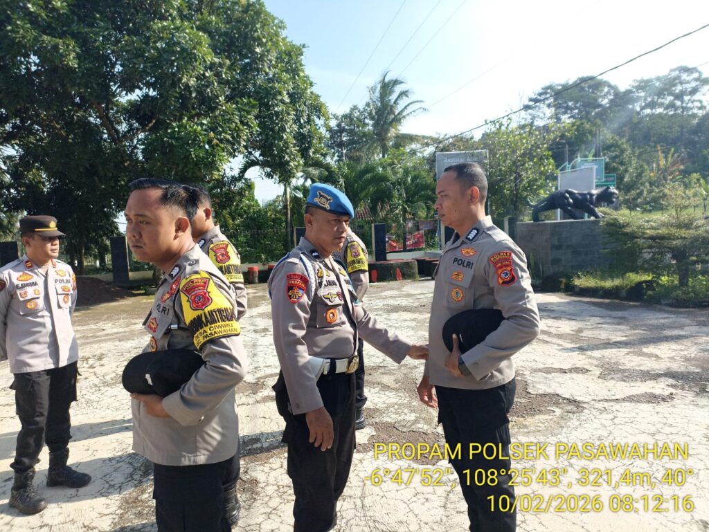 Kuningan – Polsek Pasawahan meningkatkan kewaspadaan dengan memperketat pengamanan Markas Komando (Mako) Polsek Pasawahan, Langkah ini dilakukan sebagai bentuk kesiapsiagaan personel dalam mengantisipasi potensi gangguan keamanan dan ketertiban.Petugas yang berjaga memperketat pemeriksaan terhadap setiap tamu maupun kendaraan yang masuk ke area Mako. Selain itu, anggota juga dilengkapi dengan peralatan standar pengamanan untuk memastikan situasi tetap aman dan kondusif.Kapolsek Pasawahan IPTU ENANG KURNIA, menjelaskan bahwa peningkatan pengamanan Mako merupakan instruksi langsung pimpinan sebagai bentuk kesiapan Polri dalam memberikan perlindungan, pengayoman, dan pelayanan kepada masyarakat.“Kami memastikan pengamanan di Mako Polsek Kuningan berjalan maksimal. Setiap anggota yang bertugas wajib melaksanakan SOP penjagaan dengan baik sehingga keamanan tetap terjaga,” ujar Kapolsek.Selain memperketat pengamanan, personel juga diminta tetap waspada terhadap segala bentuk ancaman serta selalu berkoordinasi dalam setiap perkembangan situasi di lapangan.Dengan langkah ini, diharapkan kepercayaan masyarakat terhadap kinerja Polri semakin meningkat, serta terciptanya situasi kamtibmas yang aman dan kondusif di wilayah hukum Polsek Pasawahan.