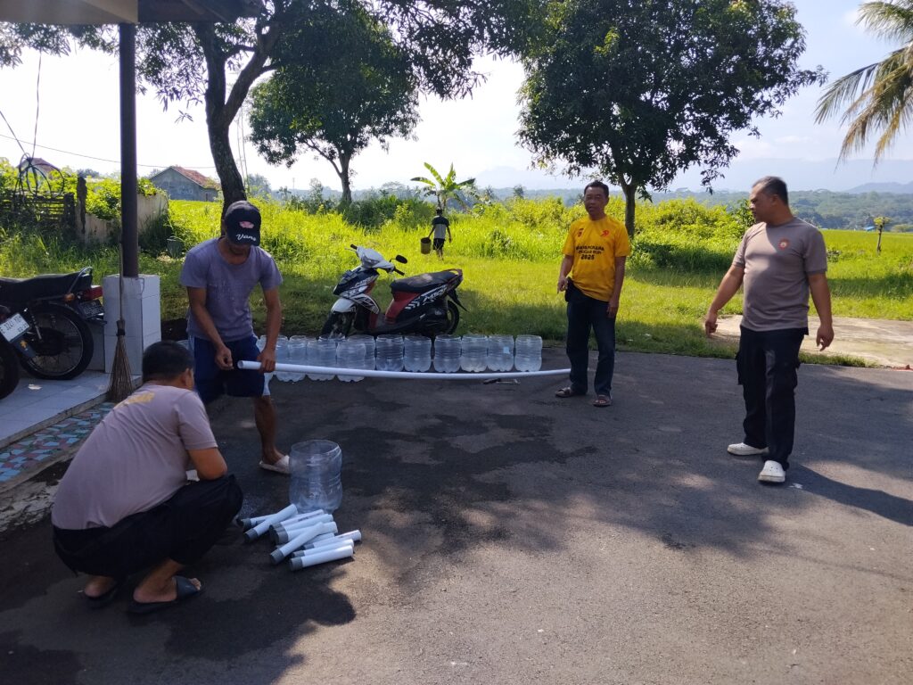 Dalam pelaksanaannya, anggota Polsek Lebakwangi membuat sebanyak 25 media tanam dari limbah rumah tangga berupa bekas galon air mineral kemasan besar.