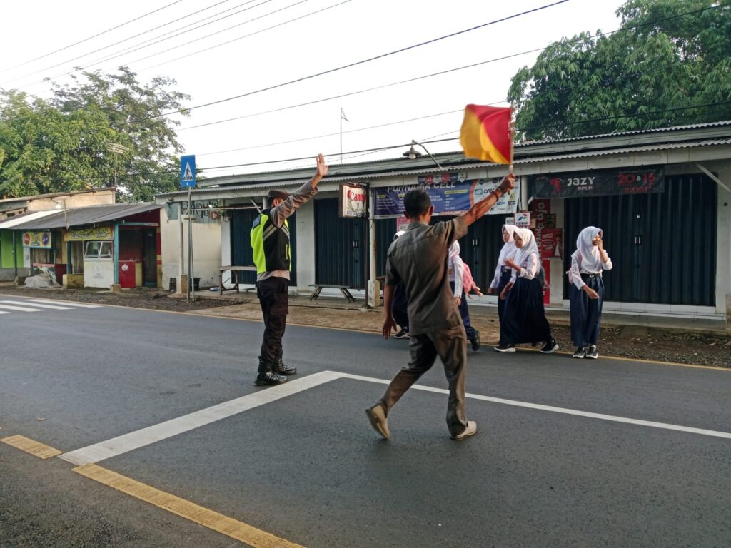 Tangan-Tangan Tangguh di Jalan Raya, Polsek Lebakwangi Pastikan Anak Sekolah Aman.