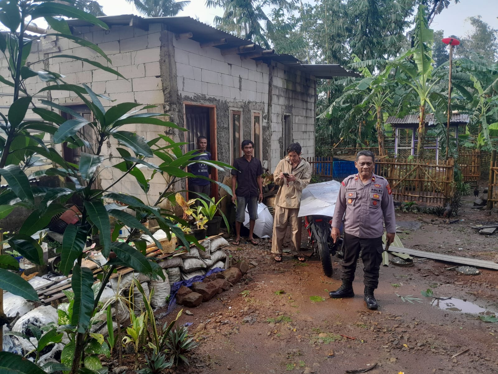 Sesaat setelah menerima informasi kejadian, Kapolsek Pancalang Ipda Lukman Hakim bersama anggota langsung bergerak menuju lokasi terdampak untuk melakukan pengecekan dan pendataan. Dalam kegiatan tersebut, Kapolsek turut didampingi oleh Kepala Desa serta Kepala Dusun setempat guna memastikan kondisi warga serta dampak kerusakan yang ditimbulkan.