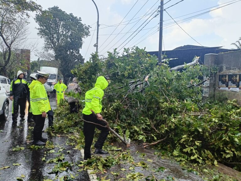 Kejadian pohon tumbang terjadi pada Selasa siang, 17 Maret 2026 sekitar pukul 13.00 WIB di Desa Sampora, Kecamatan Cilimus, Kabupaten Kuningan.