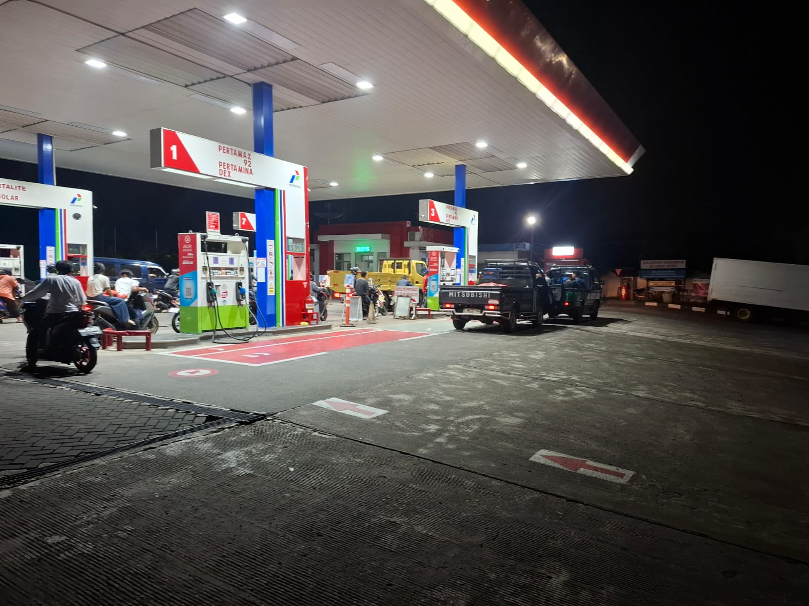 Petugas melakukan pemantauan situasi sekitar SPBU.