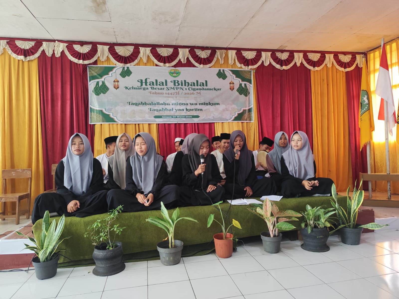 Sejak pagi hari, para tamu undangan mulai berdatangan ke lokasi kegiatan dengan penuh antusias, mulai dari unsur Forkopimcam Cigandamekar, kepala desa penyangga, komite sekolah, hingga seluruh dewan guru beserta keluarga besar SMPN 1 Cigandamekar yang turut hadir meramaikan kegiatan tersebut dengan suasana penuh kehangatan dan kebersamaan.
