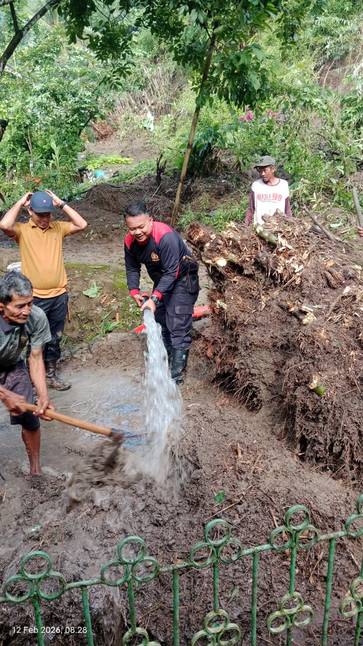 Kuningan – Polsek Luragung bersama dengan koramil Luragung serta Pemerintah Desa dan masyarakat Desa Cimulya Kecamatan Cimahi melaksanakan bersih-bersih dan evakuasi material longsor di Desa Cimulya Kecamatan Cimahi kabpaten Kuningan, Kamis (12/02/2026).