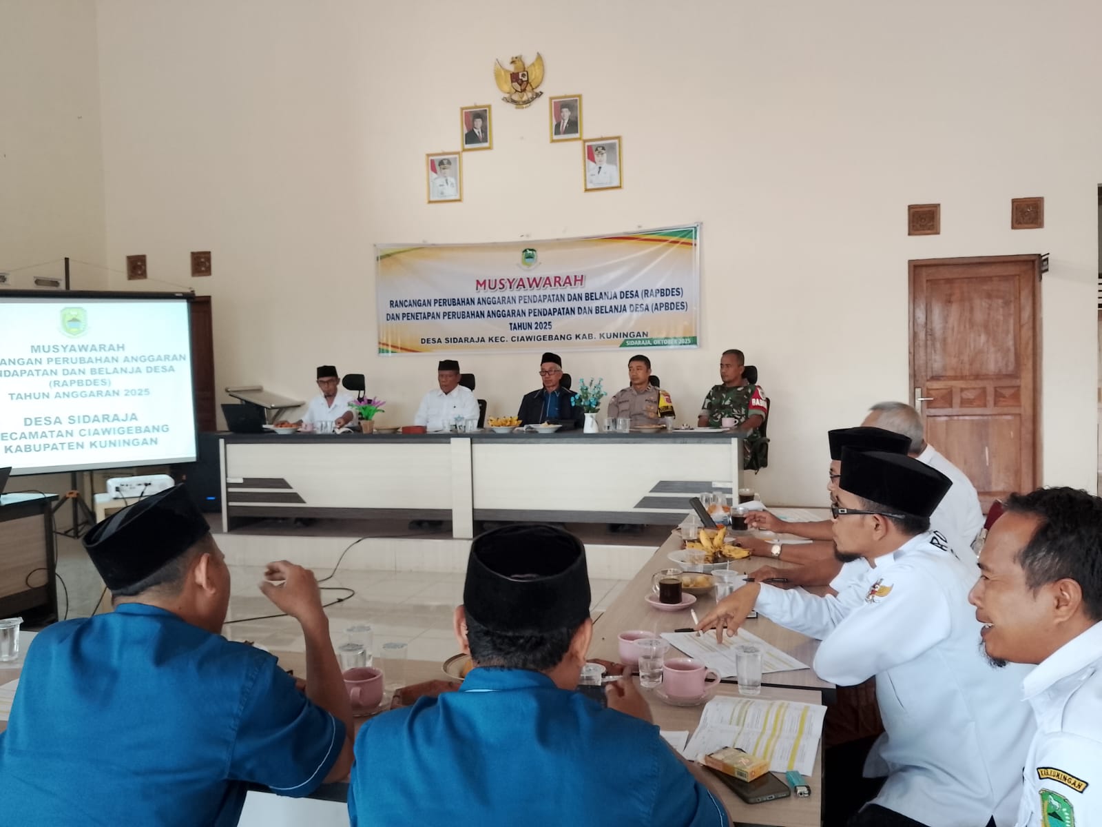 Kegiatan tersebut dihadiri oleh perangkat desa, BPD, tokoh masyarakat, dan perwakilan lembaga desa. Dalam musyawarah ini dibahas berbagai program prioritas dan penyesuaian anggaran untuk mendukung pembangunan serta kesejahteraan masyarakat Desa Sidaraja di tahun 2025.