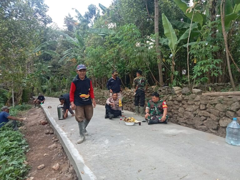Bripka Agus Salim dan Babinsa Koramil 1511 Jalaksana berdialog dengan pekerja pembangunan jalan tentang pentingnya menjaga keamanan dan ketertiban di lokasi pembangunan. Mereka juga memberikan himbauan tentang cara mencegah terjadinya C3 dan gangguan kamtibmas lainnya yang dapat mengganggu proses pembangunan.