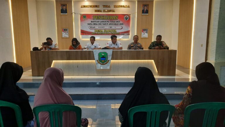Polres Kuningan Polda Jabar – Sebagai wujud sinergitas TNI–Polri dalam mendukung program pemerintah serta menjaga situasi kamtibmas, Kanit Samapta Polsek Ciawigebang Polres Kuningan Polda Jabar Iptu Kus Hermawan bersama Babinsa Desa Karoya Koramil Ciawigebang Serda Nenda menghadiri kegiatan penyaluran Bantuan Langsung Tunai Dana Desa (BLT DD) Bulan Desember Tahun 2025.