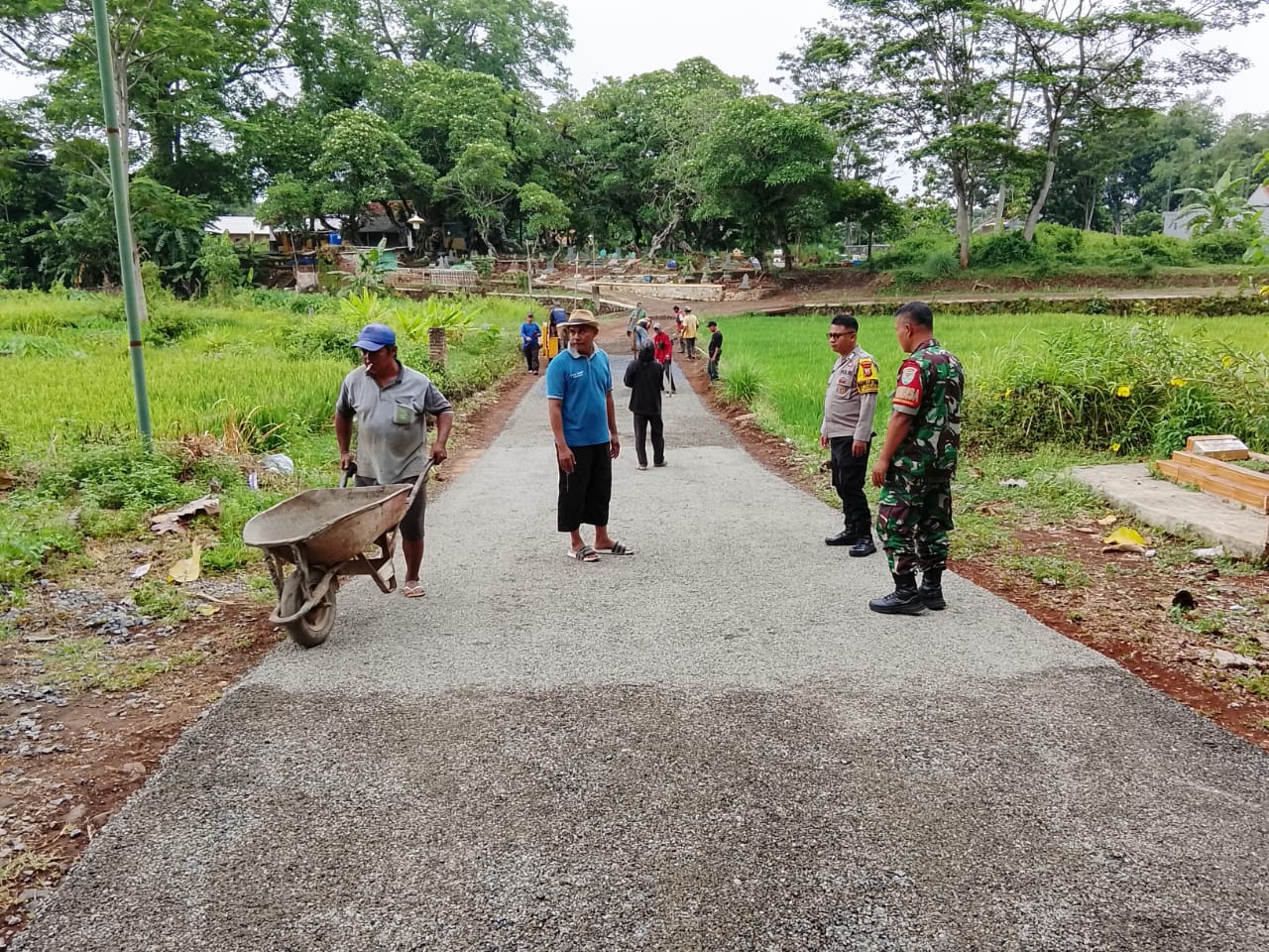 Sinergitas TNI-Polri Monitoring Perbaikan Jalan TPU Desa Kadurama