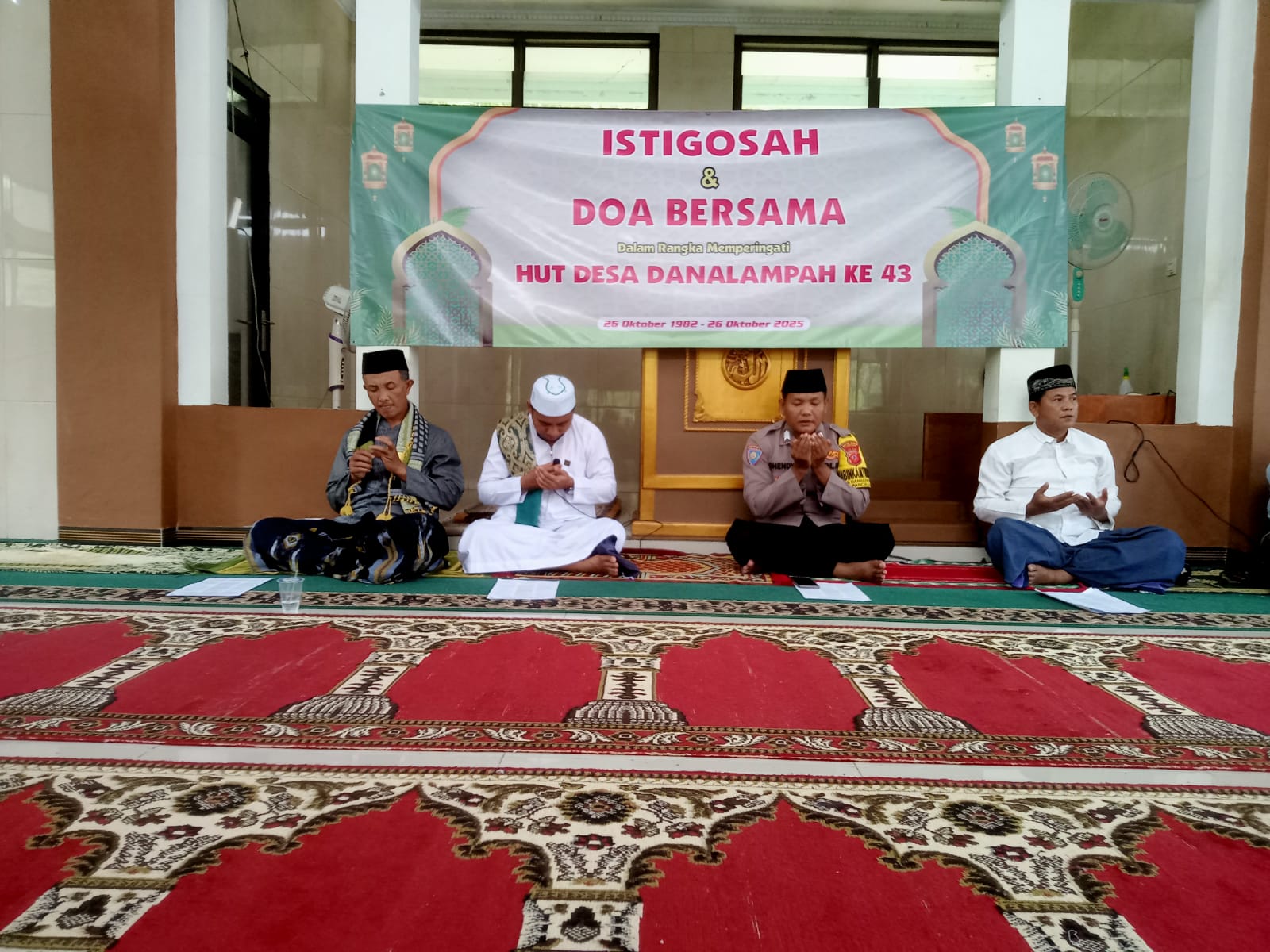 Dalam kegiatan tersebut, Bhabinkamtibmas turut berbaur dengan warga untuk mengikuti rangkaian doa bersama sebagai bentuk rasa syukur dan harapan agar Desa Danalampah senantiasa diberikan keamanan, keselamatan, serta keberkahan dalam menjalankan pembangunan dan kehidupan bermasyarakat.