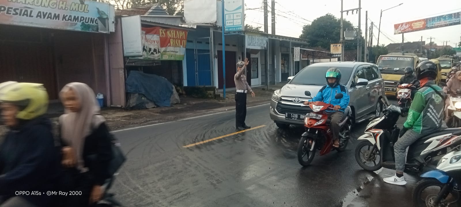 Selain pengaturan, anggota juga memberikan pesan kamtibmas kepada masyarakat. Keselamatan menjadi tanggung jawab bersama.