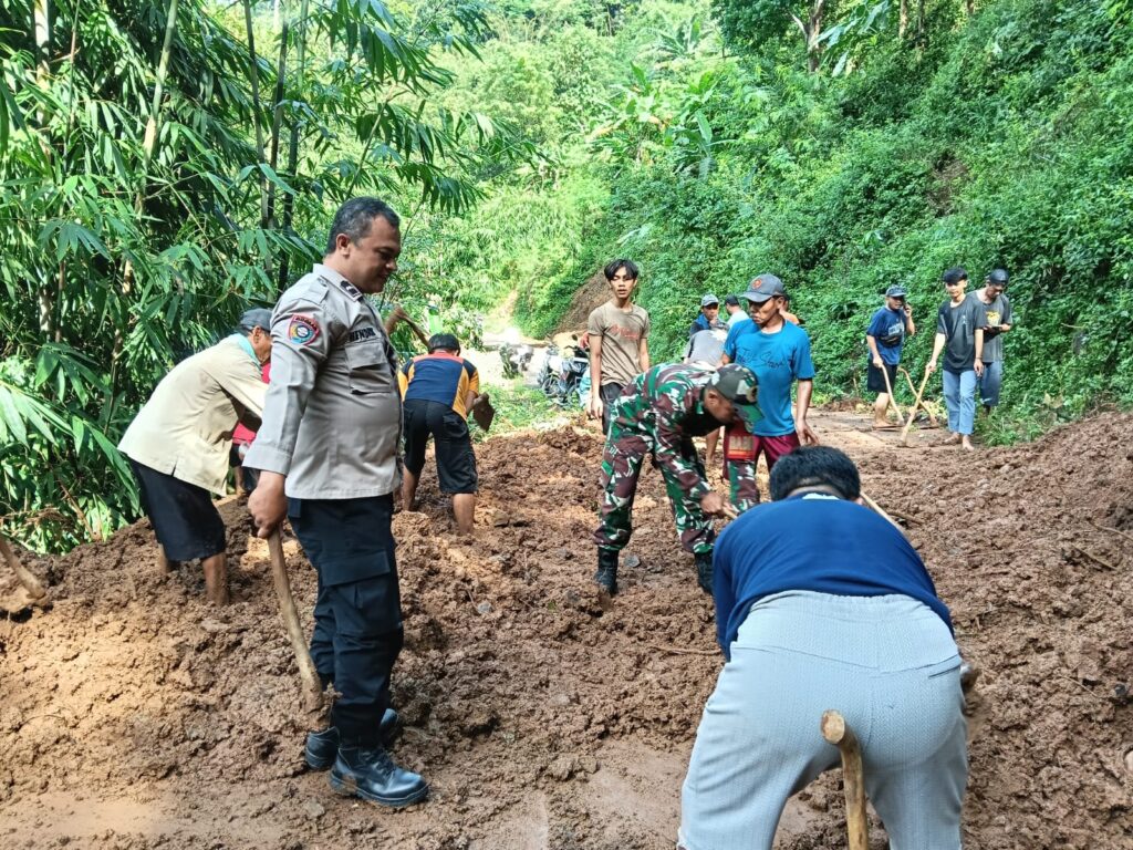 Warga desa cipakem memberikan apresiasi terhadap anggota polsek lebakwangi yang sigap dalam menangani longsor