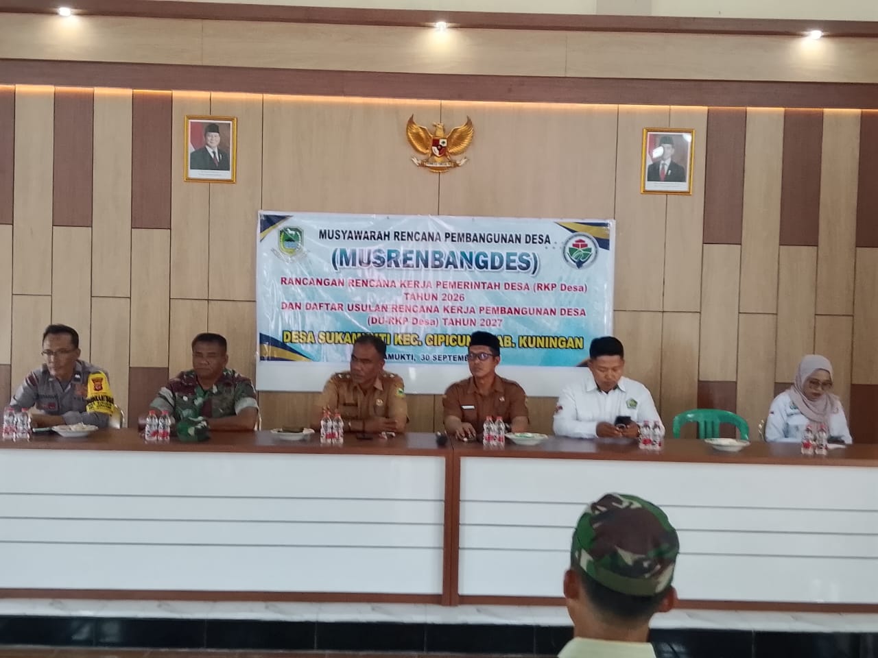 Kegiatan tersebut membahas rancangan Rencana Kerja Pemerintahan Desa (RKPDes) tahun 2026 serta Daftar Usulan Rencana Kerja Pemerintahan Desa (DURKPDes) tahun 2027. Musrenbangdes dihadiri oleh perangkat desa, BPD, tokoh masyarakat, serta perwakilan dari berbagai unsur masyarakat Desa Sukamukti.